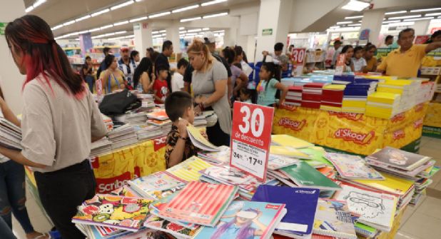Las madres y padres de familia buscaban adquirir artículos como libretas, lápices, plumas, estilógrafos, papel albanene entre otros productos haciendo no una, sino dos filas: la primera para pedir los artículos en mostrador y la segunda para pagar.