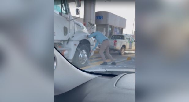 Según el testimonio de una persona que logró grabar el suceso, un conductor de un camión de carga (trailero) estaba haciendo sonar repetidamente la bocina de su vehículo dentro de la fila de la caseta.