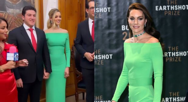 Monterrey.- Para celebrar el 213 aniversario del Grito de Independencia de México, el pasado 15 de septiembre, en Monterrey, Nuevo León, Mariana Rodríguez, esposa de Samuel García, uso el mismo vestido que Kate Middleton, princesa de Gales.
