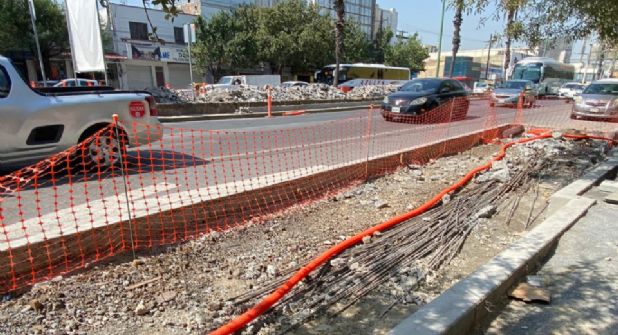 Monterrey. - El municipio de Monterrey continúa con las adecuaciones sobre la avenida Francisco I. Madero tras terminar los trabajos de protección del Arco de la Independencia.