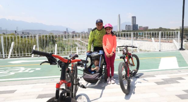 A pesar del intenso calor que se registró en la entidad, algunos regios decidieron salir a caminar, andar en bicicleta, patines y patinetas y, de esta manera, conocer el puente que inauguró recientemente el gobierno de Monterrey.