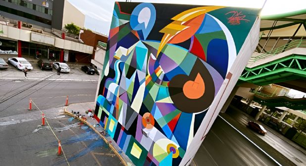 Su arte se caracteriza por ser colorido y abstracto, pero cada una de sus pinturas con mensajes que ponen a pensar a la ciudadanía que no desaprovecha la oportunidad para fotografiarlas.