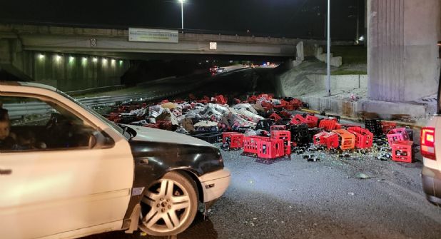 Horas después tras la intervención de personal de la compañía refresquera y elementos de tránsito se limpió la zona y se logró la liberación de la vía.