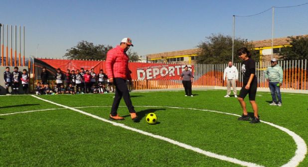 “Una cancha más inaugurada de un total de 136 que cuentan con nuevo pasto sintético, porterías, redes, malla ciclónica y demás equipamiento”, explicó Nava.