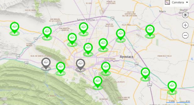 Por otra parte, aparecieron en color gris -por estar en reparación- las estaciones de Monterrey centro y la suroeste en la ciudad de Santa Catarina.