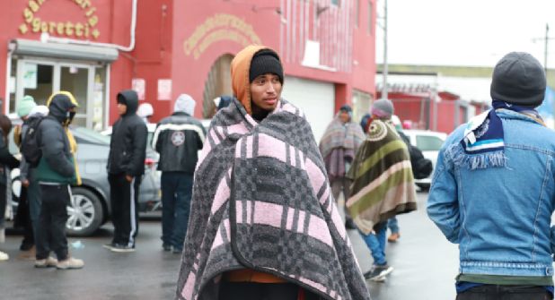 Monterrey.- La situación de las personas migrantes que llegan a Nuevo León en busca de mejorar su calidad de vida, se complica ante las bajas temperaturas de la entidad, pues ahora, quienes se refugian afuera de la Parroquia Santa María Goretti tienen que resistir el frío en la calle.