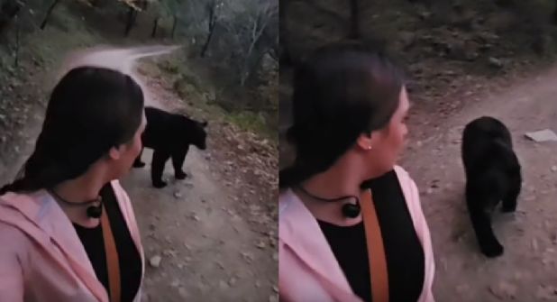 La chica, que subió el video a su cuenta de TikTok, denotaba nerviosismo y cierto temor, pero combatió tales sentimientos con diálogos con el oso, a quien le pidió que no corriera.