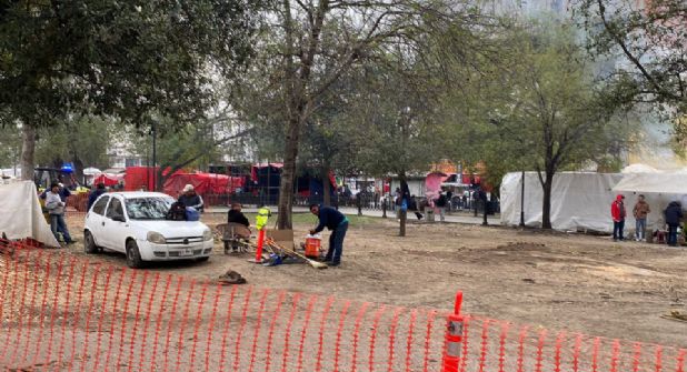 Por la mañana de este martes 2 de enero, se observaron al menos siete trabajadores en la emblemática plaza de Monterrey, ninguno de ellos trabajando en la remoción de troncos secos ya talados, o plantando más árboles.