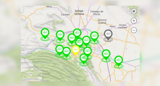 Por su parte, la zona centro de Monterrey se registra en tonalidad amarilla con una calidad del aire aceptable, mientras que, Pesquería se encuentra en mantenimiento.