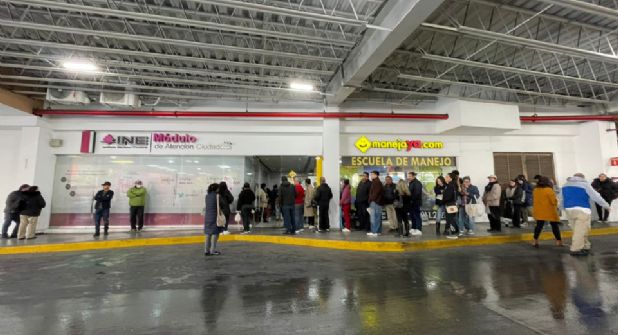 ABC Noticias acudió al módulo del INE, ubicado en Plaza Real, en la avenida Gonzalitos en el municipio de Monterrey, donde había una larga fila de ciudadanos con sus documentos en mano esperando pasar a las oficinas para ser atendidos.