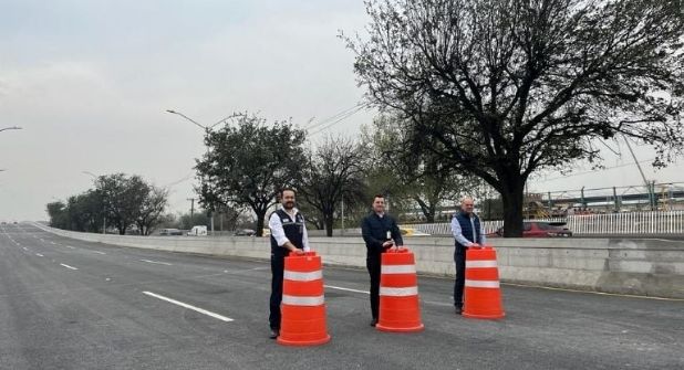 El edil estuvo acompañado por Guillermo Hernández, secretario de Infraestructura Sostenible y José Santos Valdes, secretario de Servicios Públicos de Monterrey, quienes liberaron la circulación para inaugurar la obra.