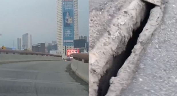 Al evidenciar la brecha entre los puentes, el individuo advirtió sobre el peligro para los conductores que transitan por la avenida en caso de que estas se lleguen a separar completamente.