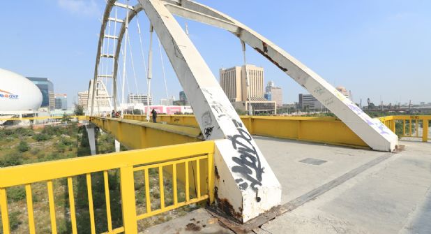Monterrey.- El emblemático Puente del Papa que conecta la colonia Independencia con el centro de Monterrey, luce ahora en completo abandono.