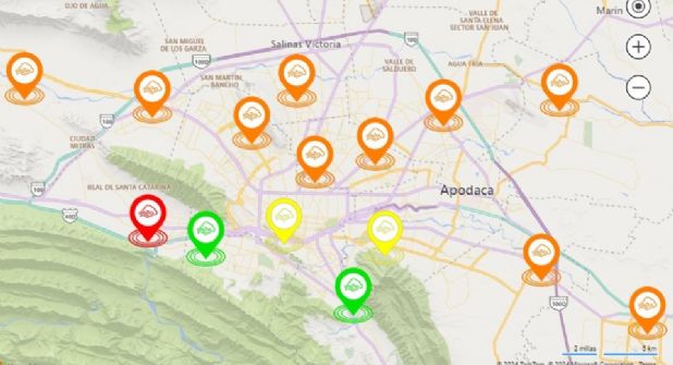 Mientras que las estaciones marcadas en naranja, con un mal índice de aire, son García Noroeste 2 y 3, Monterrey Noroeste, Escobedo, San Nicolás Norte 2 y Noreste, Apodaca, Pesquería, Juárez y Cadereyta.