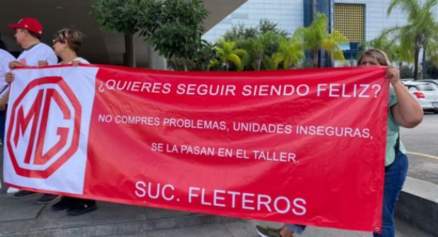 Ante tal situación, la mañana de este domingo, mientras se llevaba a cabo la expo auto agencias Monterrey en Cintermex, Dannia y su familia llegaron al lugar para protestar en contra de la agencia MG Motors y exponer su caso ante las demás personas.