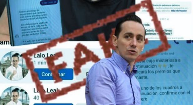 En el mismo video adjuntó cuatro imágenes, las primeras dos son de una conversación en donde el supuesto “Lalo Leal” (cuenta falsa) está ofreciendo regalos a una usuaria.
