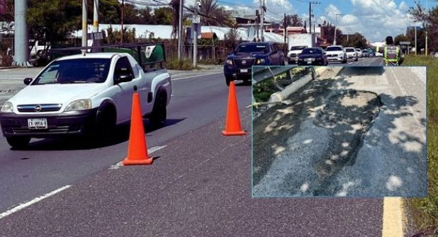 “Es volver a colocar otro vendaje a manera de que no haya más vehículos dañados y que no vaya a haber un accidente con magnitudes fatales, pero no le compete a municipio, sino a la SICT (Secretaría de Infraestructura, Comunicaciones y Transportes)”, dijo un trabajador de movilidad, quien añadió que el bache ya se había tapado, pero por las recientes lluvias volvió a aparecer.
