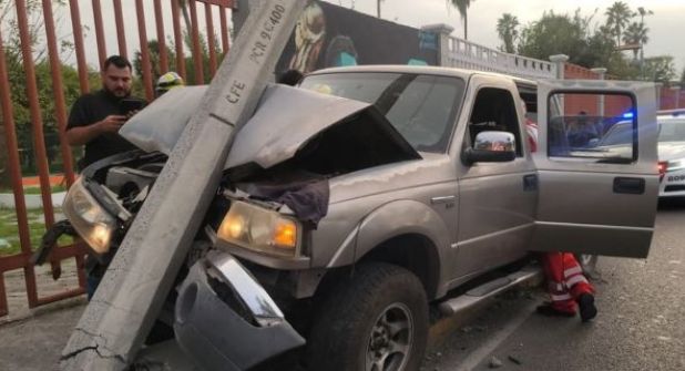 Monterrey.- Un vehículo particular se estrelló contra un poste de CFE frente al Parque España, dejando dos lesionados en el lugar, esto durante la tarde de este sábado.