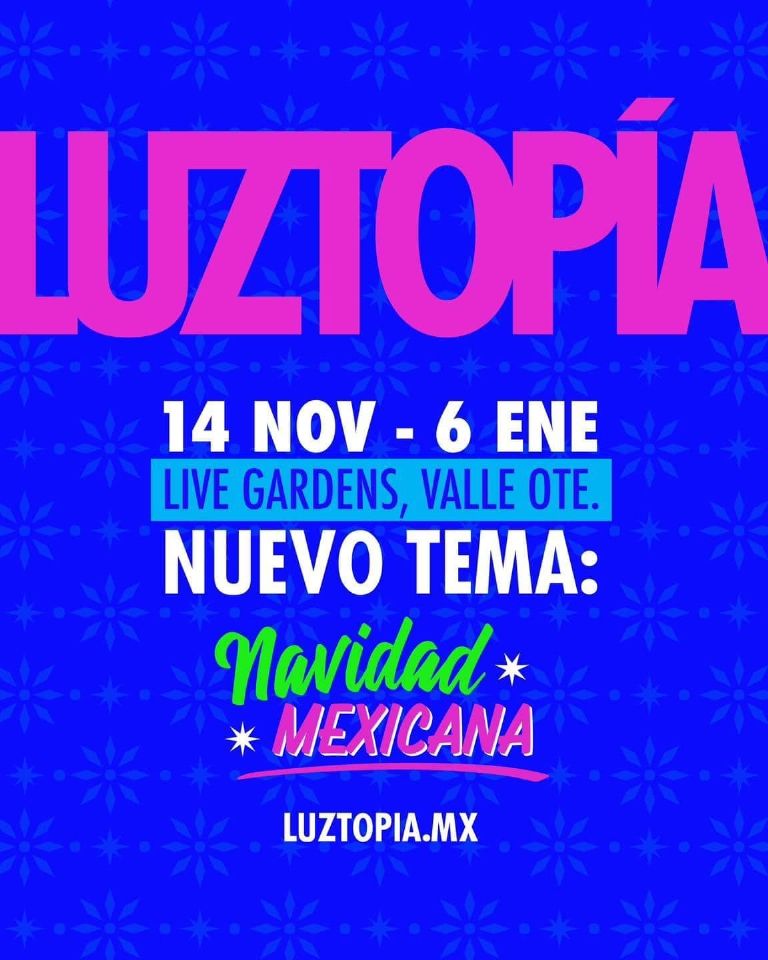 Este próximo jueves llega la experiencia luminosa navideña en el festival de Luztopía. En su séptima edición el evento busca homenajear la tradición de la navidad mexicana mediante un recorrido con figuras de piñatas, cactus, alebrijes, calaveras y monumentos.