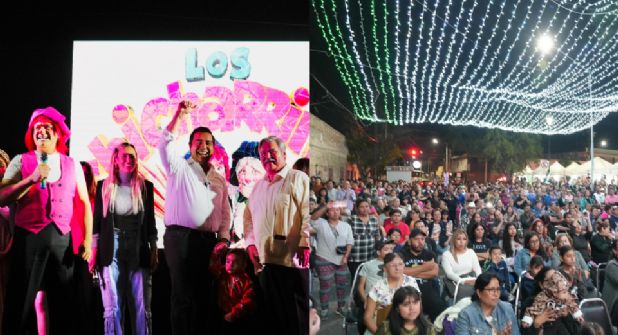 Santa Catarina.- El alcalde de Santa Catarina, Jesús Nava Rivera, y la presidenta del DIF municipal, Paola García Yves, prendieron ayer el Escenario del Pueblo con el show de 'Los Chicharrines' en el Mercado La Atarjea.