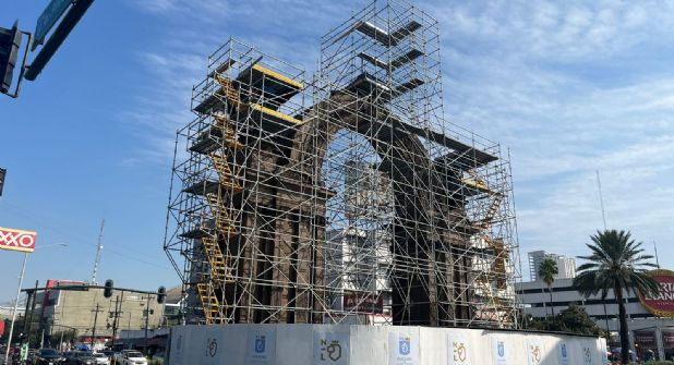 Fue con el apoyo de Protección Civil, Fuerza Civil, y la supervisión de la Secretaría de Cultura que la estatua que corona el arco fue retirada.