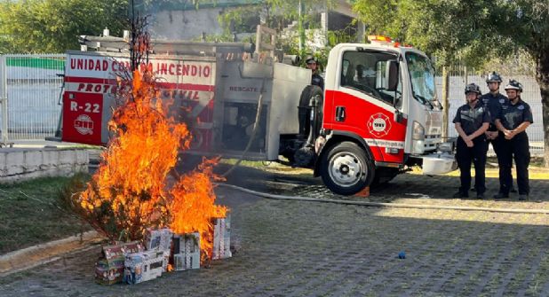 Mientras tanto, el director de Protección Civil de San Pedro, Gilberto Almaguer encabezó la demostración de incendio del pino de Navidad ocasionado por un corto circuito, donde se demostró lo rápido que este siniestro puede originarse y propagarse dentro de una casa.