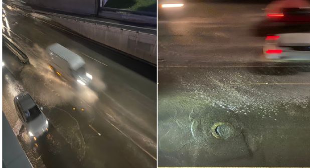 La filtración de aguas residuales obliga a los vehículos a reducir la velocidad de manera abrupta para evitar derrapes en la superficie mojada, lo que podría derivar en accidentes viales.