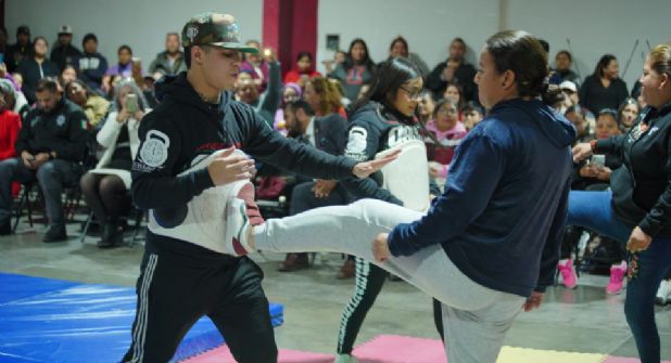 García. – El municipio de García organizó una exhibición de defensa personal en donde decenas de mujeres aprendieron las bases de las artes marciales mixtas (MMA).