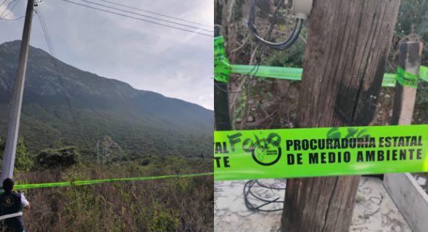 Monterrey.- La Procuraduría Estatal de Medio Ambiente clausuró este jueves 19 de diciembre una línea eléctrica ilegal en la zona del parque La Huasteca, en Santa Catarina, como parte de las acciones para detener la urbanización prohibida en esta área protegida.