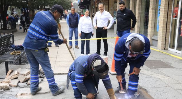 Monterrey.- Con el objetivo de mejorar la imagen urbana de la ciudad, el municipio de Monterrey realizó este viernes la rehabilitación del emblemático corredor comercial Morelos.