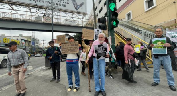 Monterrey.- Por séptima ocasión integrantes de la “Alianza de Usuarios de Servicios Públicos y Financieros”, se manifestaron en contra del aumento a las tarifas del transporte público a las afueras del Mercado Juárez, en el Centro de Monterrey.