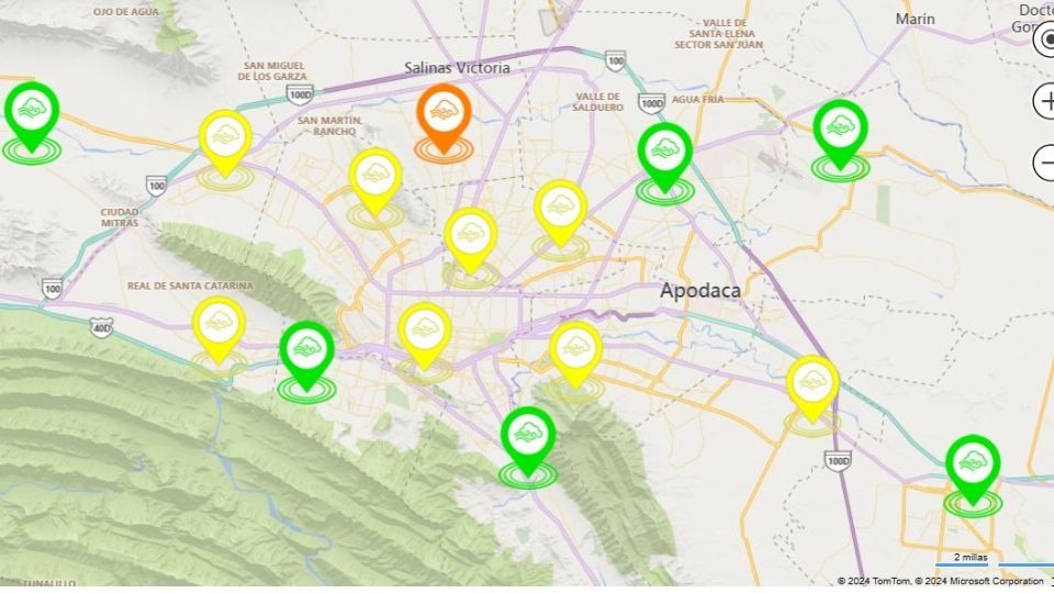 García noroeste 2, San Pedro suroeste 2, Monterrey sur, Apodaca noreste 2, Pesquería este y Cadereyta sureste 3, están con una buena calidad del aire.
