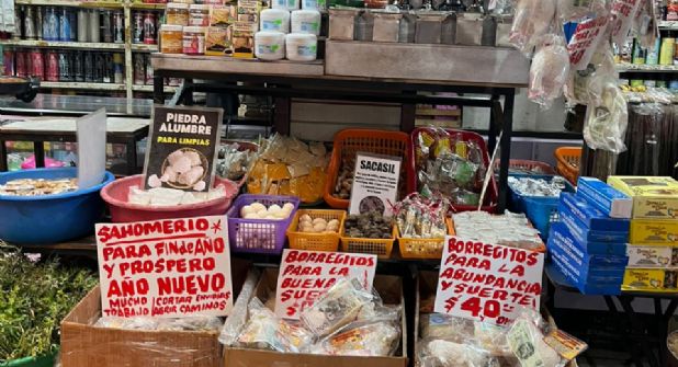 Según la señora María Guadalupe Quintero, conocida en el Mercado Juárez como la señora Lupina, quien lleva más de 50 años ejerciendo el esoterismo y es propietaria del lugar, refiere que en su tienda los productos más solicitados para estas fechas son los borregos de buena suerte y diversos productos para la buena energía y dinero.