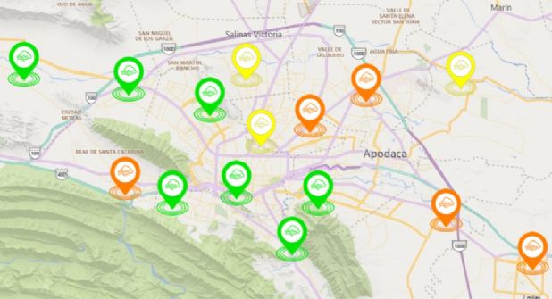 Las estaciones que están en color verde son las ubicadas en los siguientes municipios: San Pedro suroeste 2, García noroeste 2 y 3, Monterrey noroeste, centro y sur, así como Guadalupe sureste.