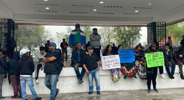 En una manifestación en la Plaza Zaragoza, frente al Palacio Municipal, los vendedores manifestaron que la Dirección de Comercio del municipio, a cargo de Miguel Aguillón, les otorgan permisos de palabra, pero luego acuden los inspectores a decomisar su mercancía.