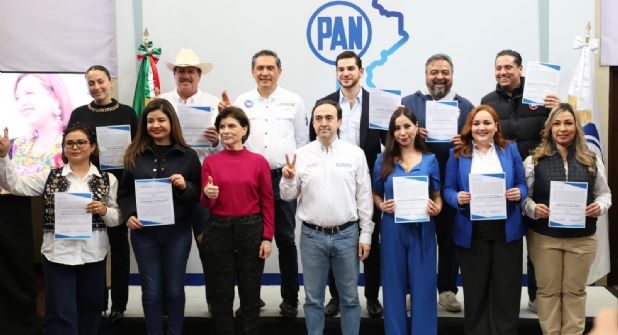 Monterrey.- El Partido Acción Nacional (PAN) en Nuevo León, presentó este domingo al candidato de fórmula para el Senado de la República, a sus candidatos para diputaciones federales.