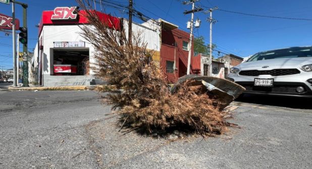 Monterrey.- A dos meses de haber terminado las fiestas navideñas, los pinos viejos siguen siendo una manera provisional de tapar registros abiertos.