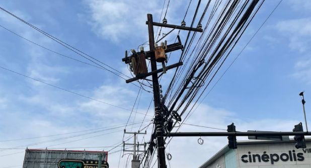 La imagen urbana se ve obstaculizada por los cables, y esta situación se encuentra frente a un centro comercial al aire libre con marcas de lujo, y restaurantes gourmet en el municipio de San Pedro.