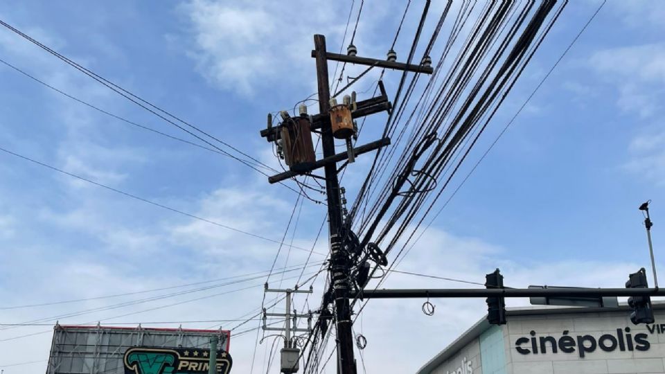 Monterrey.- Pese a que existe un proyecto en San Pedro Garza García de retirar cables aéreos y postes en Centrito Valle y el Casco, en Gómez Morín, se pueden observar cables colgados y postes inclinados.