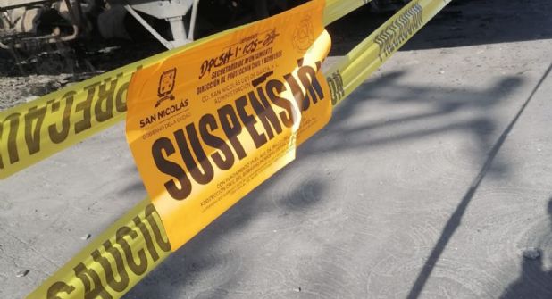 La tarde de este lunes 5 de febrero cuando elementos de bomberos y de Protección Civil de Nuevo León finalizaron labores de enfriamiento en el área, personal del gobierno municipal procedieron a colocar papeles con la leyenda de “Suspensión”.