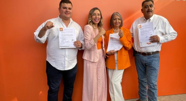 Monterrey.- Al asegurar que este próximo 2 de junio pintarán de naranja cada rincón del sur de Nuevo León, los aspirantes de Movimiento Ciudadano a la alcaldía de Santiago y Galeana, así como la diputación local del distrito 24, entregaron su solicitud de registro interno en la casa ciudadana la tarde de este miércoles.