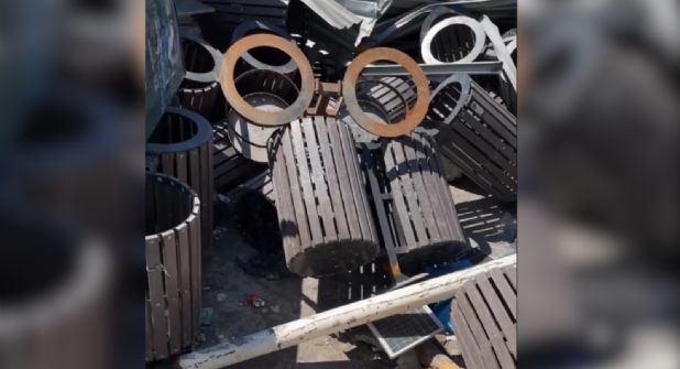 En el video se ven también botes de basura color verde que fueron colocados durante la Administración del anterior alcalde Adrián de la Garza y que fueron criticados por su falta de practicidad y tener frecuentemente la basura desbordada.