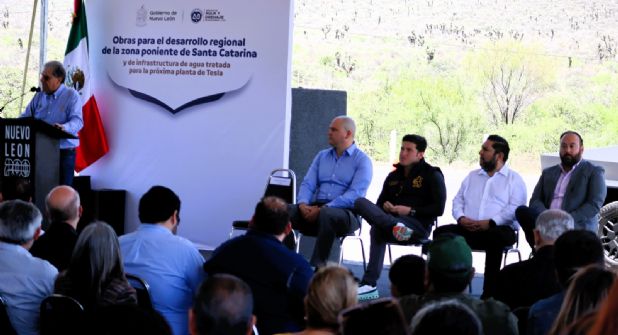 En colaboración con el gobierno del estado, se han iniciado las obras para el desarrollo regional de la Zona Poniente de Santa Catarina, así como la infraestructura de agua tratada. Estas medidas están diseñadas para facilitar la llegada y funcionamiento óptimo de la planta de Tesla, que se dedicará a la fabricación de vehículos eléctricos.