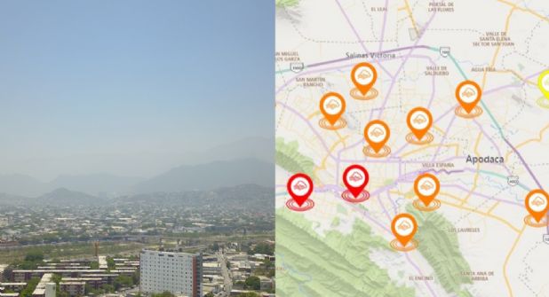 El mayor riesgo para la población, de acuerdo con los datos de las 2 p.m., se encuentra en el Centro de Monterrey, con 178 microgramos de partículas contaminantes por segundo, lo que corresponde a una calidad considerada “Muy mala” (rojo).