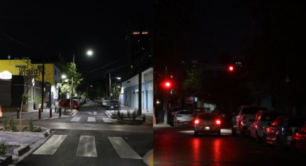 Monterrey.- Mientras que corredores verdes recientemente terminados por el municipio de Monterrey lucen iluminados, con banquetas amplias para el paso de peatones, ciclistas y sillas de ruedas, las calles que los rodean se mantienen en la oscuridad, inseguras y con banquetas en mal estado.