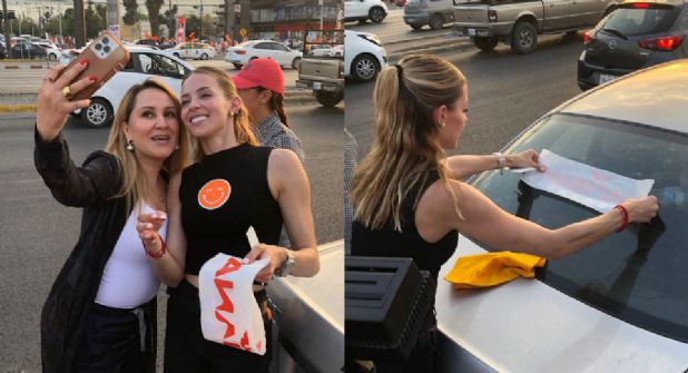 Además de la calca, la también influencer y titular con licencia de Amar a Nuevo León aprovechó para tomarse algunas fotografías con los asistentes y con quienes salían de la plaza comercial, e incluso, regaló algunas playeras y gorras alusivas a su campaña.