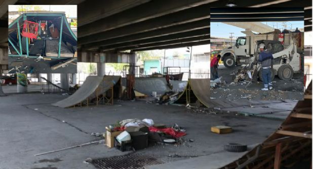 Monterrey.- El antiguo paraíso de “skaters”, ubicado bajo el puente de las avenidas Fidel Velázquez y Rodrigo Gómez en Monterrey, está en un proceso de limpieza y mantenimiento.