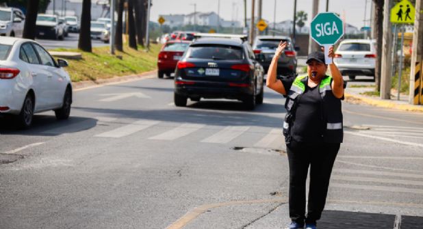 En las vialidades cercanas a la construcción, el Gobierno de Monterrey dispuso un operativo compuesto por unos 30 promotores de Movilidad y oficiales de Tránsito para agilizar la circulación vehicular.