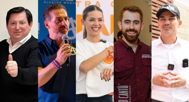 Los candidatos a la alcaldía de Monterrey son Mariana Rodríguez Cantú, por el partido de Movimiento Ciudadano; Adrián de la Garza Santos, por la coalición “Fuerza y Corazón por Nuevo León”; Mauricio Cantú González, por la coalición “Sigamos Haciendo Historia en Nuevo León”.