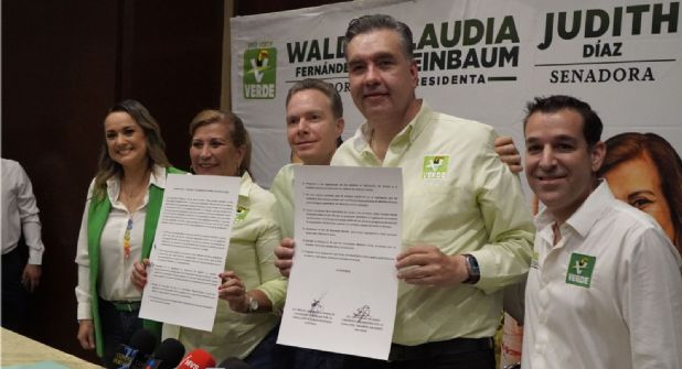 Durante la firma, con la que trabajarán legislativamente de ganar la contienda por el Senado, Díaz y Fernández estuvieron acompañados del senador y dirigente nacional del Partido Verde Ecologista de México, Manuel Velasco.